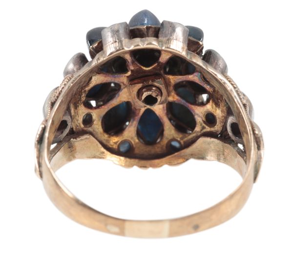 AN 18CT GOLD AND DIAMOND SET CLUSTER RING