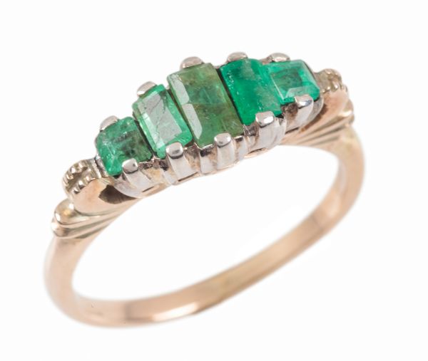 AN EMERALD FIVE STONE RING