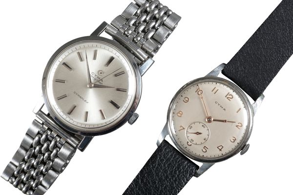 with automatic movement, silver dial, silver baton numerals, silver hands, circa 1970s, case diameter approx. 32mm; together with one other Cyma stainless steel wristwatch (2)