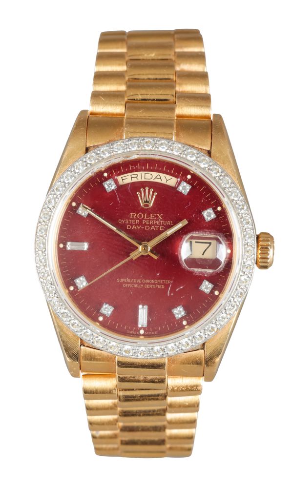 ROLEX DAY-DATE: A RARE 18CT GOLD BRACELET WATCH