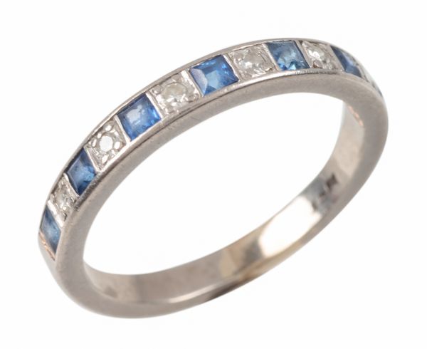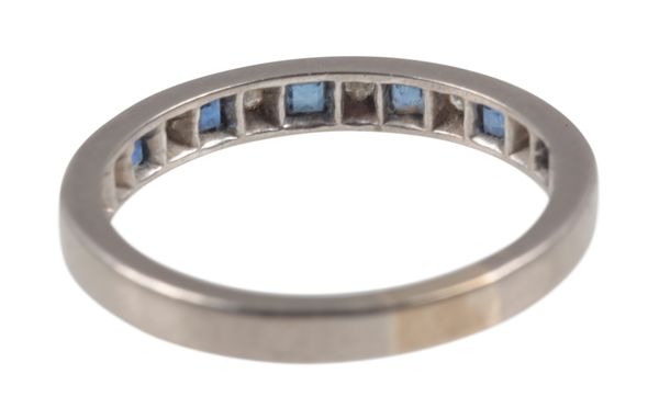 A SAPPHIRE AND DIAMOND HALF HOOP ETERNITY RING