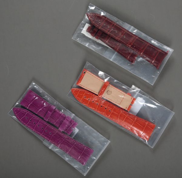 standard size, in its original packaging, old shop stock; together with two other Franck Muller leather watch straps, in original packaging, old shop stock (3)