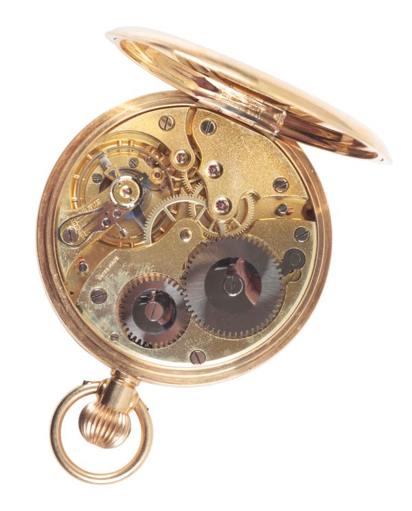 AN 18CT GOLD HALF HUNTER POCKET WATCH