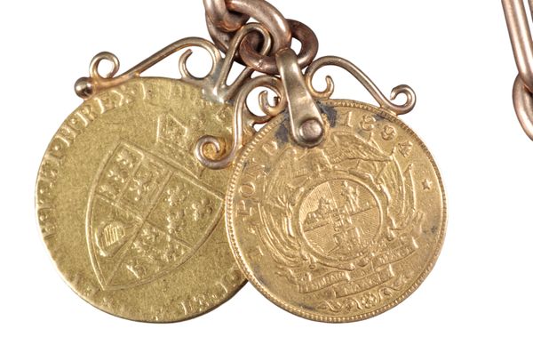 with a George III gold spade guinea fob; together with a one 1894 pond gold coin, c. 58.70 grams gross weight (2)