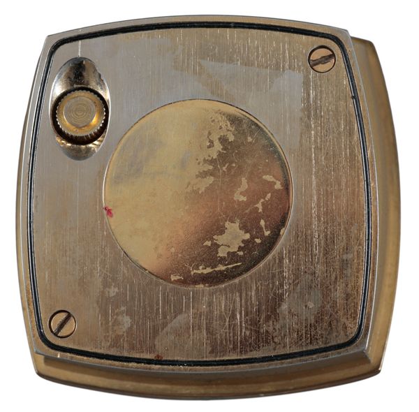 with keyless wind eight-day movement, gold dial, gold batten numerals, gold hands, date aperture, circa 1970s, 9cm high x 9cm wide