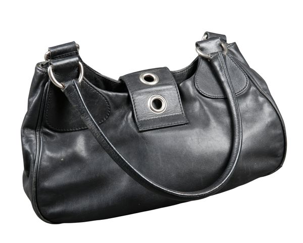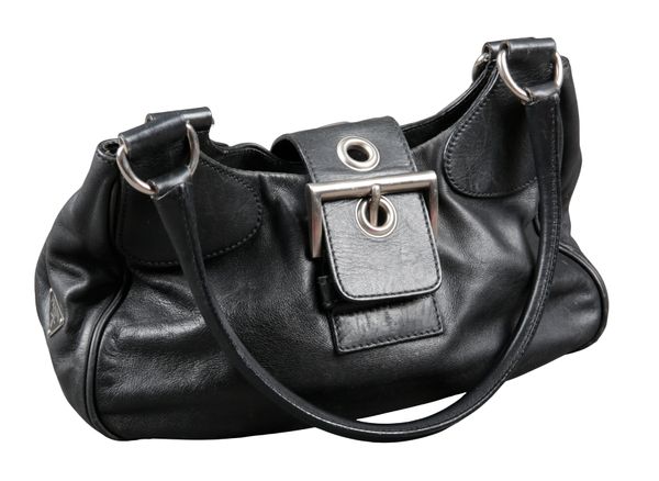 PRADA: A BLACK LEATHER SHOULDER BAG