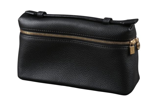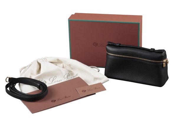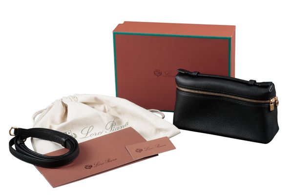 LORO PIANA: A BLACK GRAINED CALF LEATHER ‘EXTRA POCKET MINI POUCH’ CLUTCH BAG