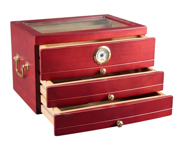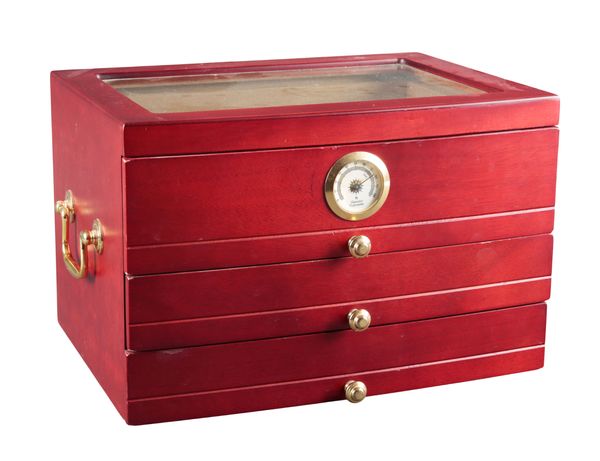 A HYGROMETER FAUX MAHOGANY GLAZED TOP HUMIDOR