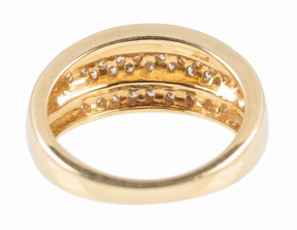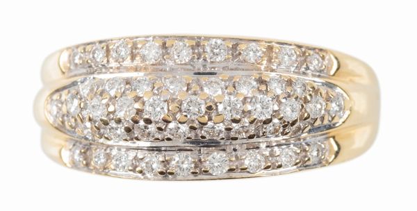 AN 18CT THREE BAND RING PAVE SET WITH DIAMONDS