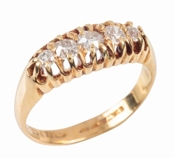 AN EDWARDAIN FIVE STONE DIAMOND GYPSY RING