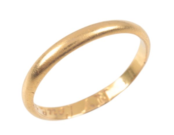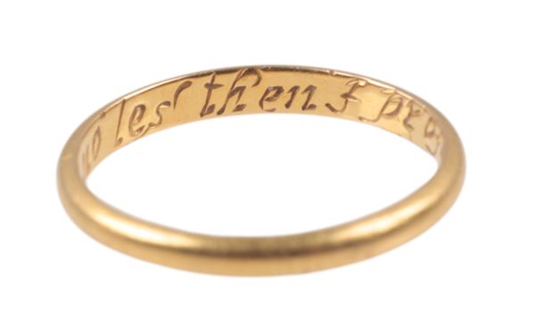 the D-shaped band with interior engraving "My Love No lesr (sic) then S proses", ring size J, c. 1.6 grams