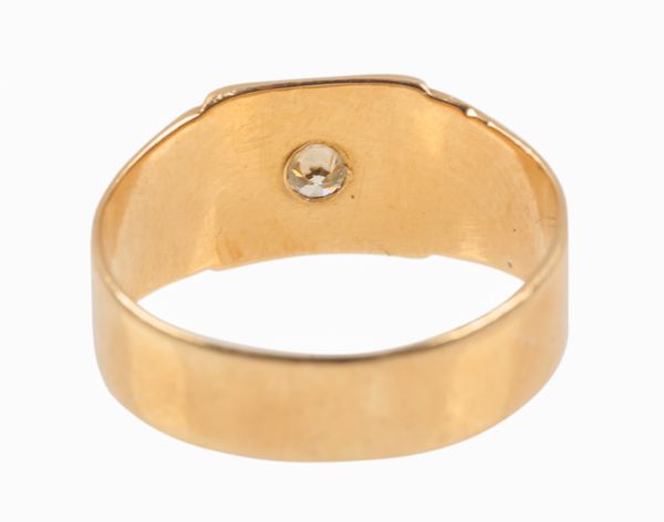 AN 18CT GOLD SIGNET RING SET WITH A ROUND BRILLIANT CUT DIAMOND