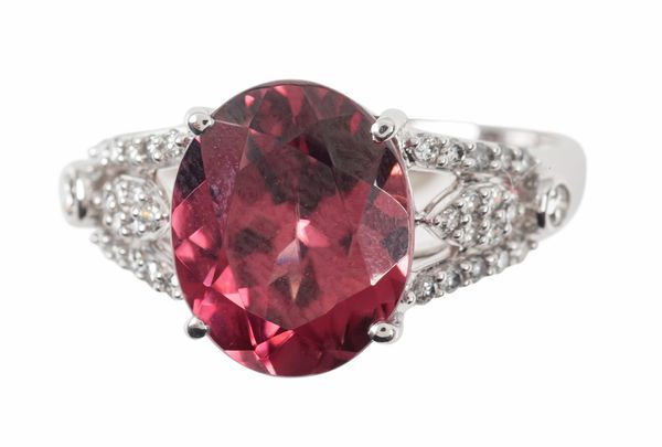 AN 18CT WHITE GOLD ZIRCON AND DIAMOND RING