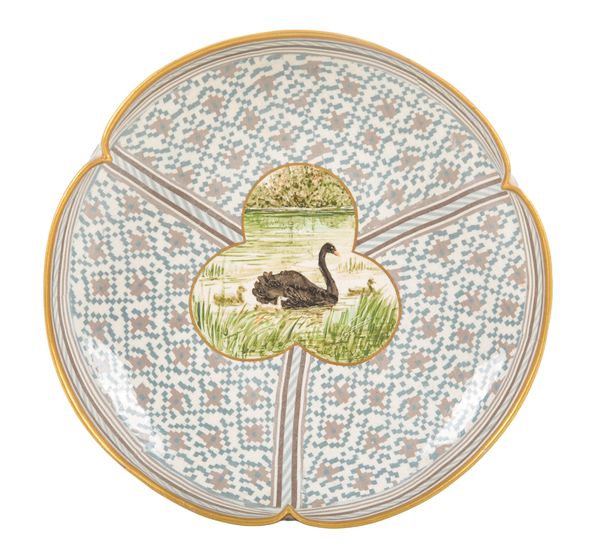 A RARE DOULTON & RIX'S PATENT MARQUETERIE DISH