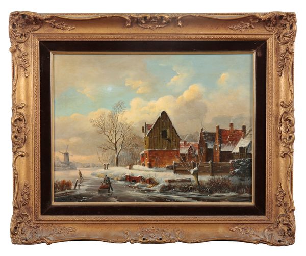 VANDER MEULLEN (20TH CENTURY) Dutch ice skating scene with houses
