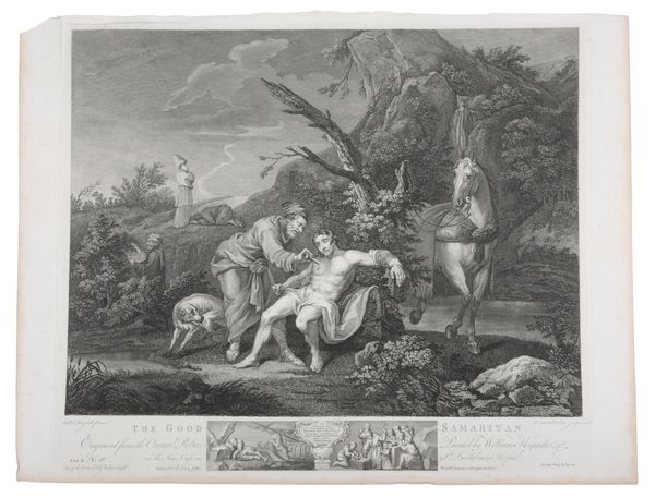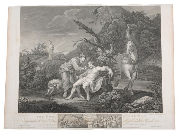 etching, 39cm x 46cm; together with six further etchings by and after the same artist, including 'The Pool of Bethesda' and 'The Good Samaritan' (7)