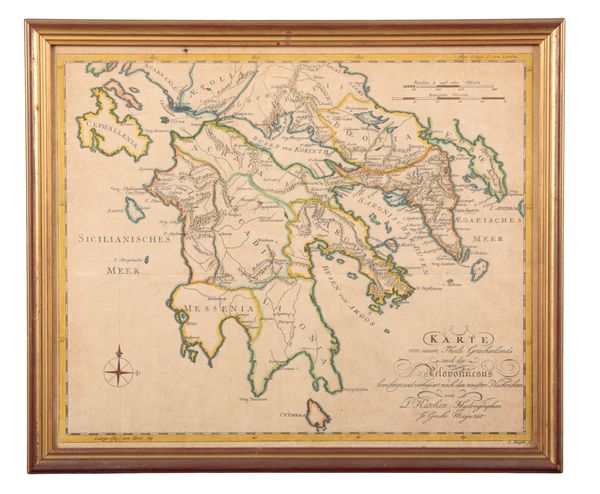 engraved map in colours, 52cm x 59cm; together with four further maps (5) The fittings of a Mediterranean yacht.