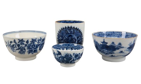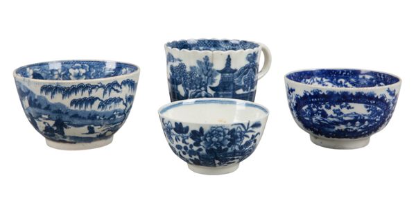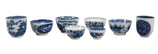 late 18th century, comprising various chinoiserie decorated examples in underglaze blue, the largest measuring 8.5cm diameter (8)