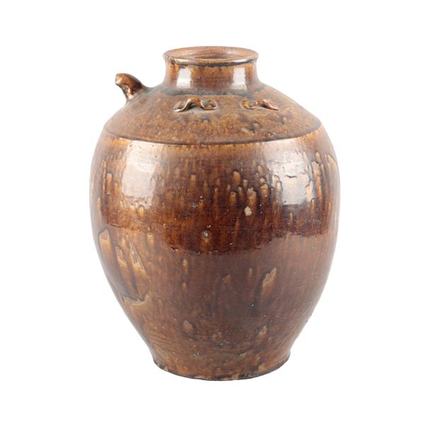 Ming dynasty, with four small loop handles to the shoulder and a spout, 42cm high Provenance: The Peter Newall Collection.