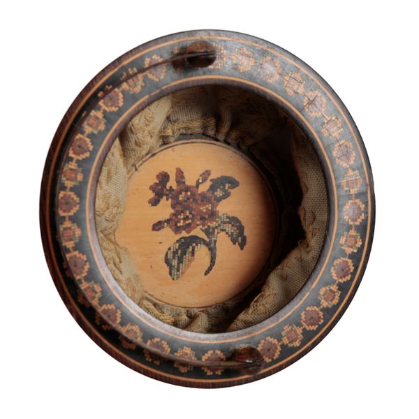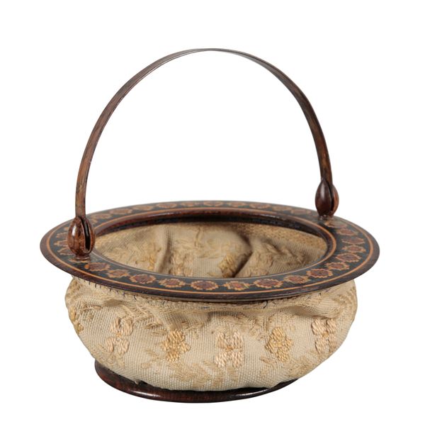 A VICTORIAN TUNBRIDGE WARE SEWING OR RIBBON BASKET
