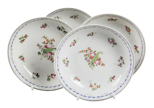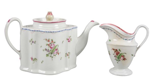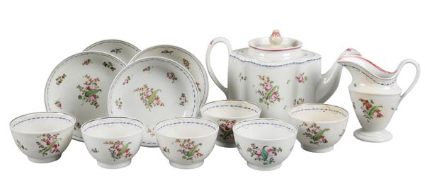 late 18th century, decorated throughout with polychrome floral sprays, the underside numbered 'N208', comprising a teapot, six tea bowls, four saucers, and a jug (12)