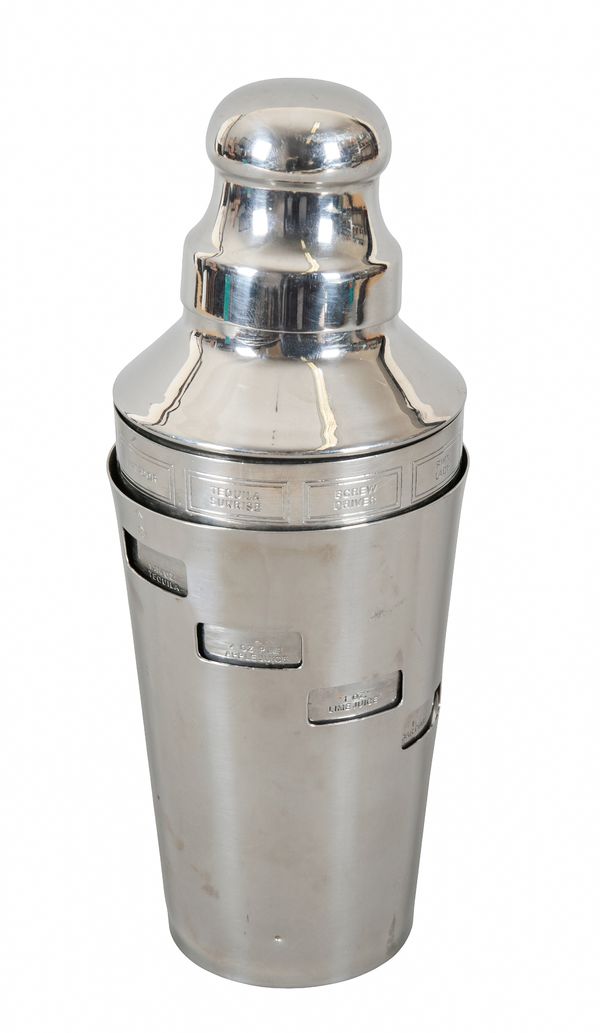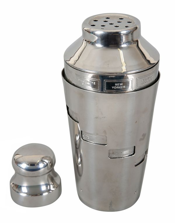 AN ART DECO STYLE 'RECIPE' COCKTAIL SHAKER