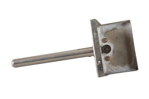 mid-20th century, (without manufacturer's stamp, instructions, or box), the steel rectangular flash tray for magnesium powder with spring driven flint wheel, 7cm high x 17cm wide x 7cm deep