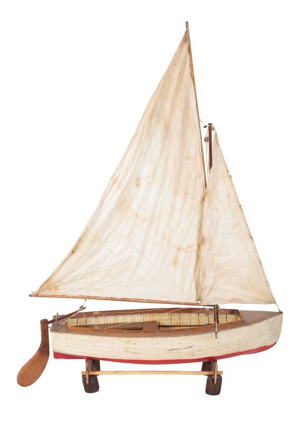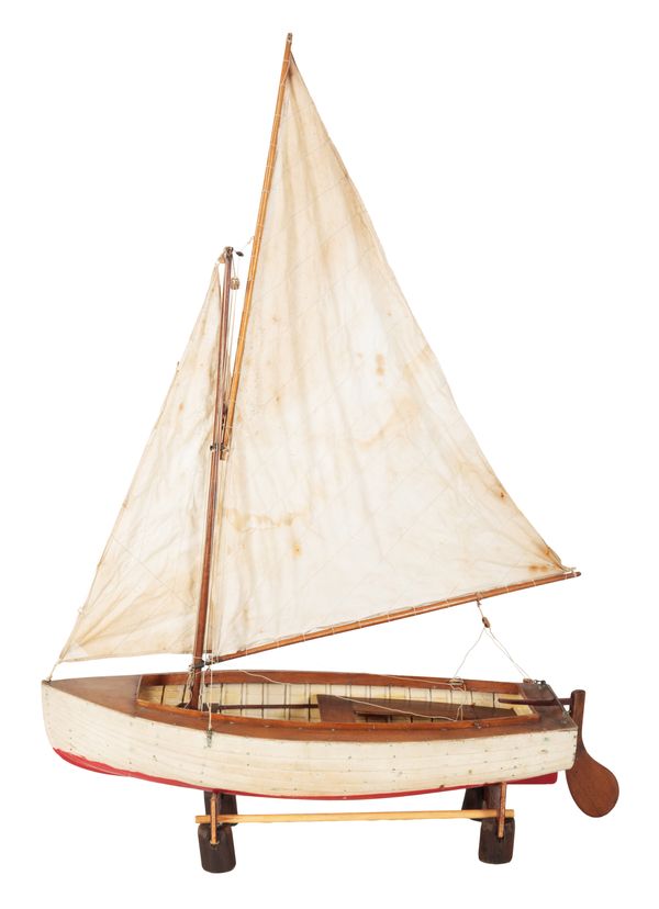 early 20th century, complete with clinker built hull, mast and rigging, on a fitted stand, 81cm high overall