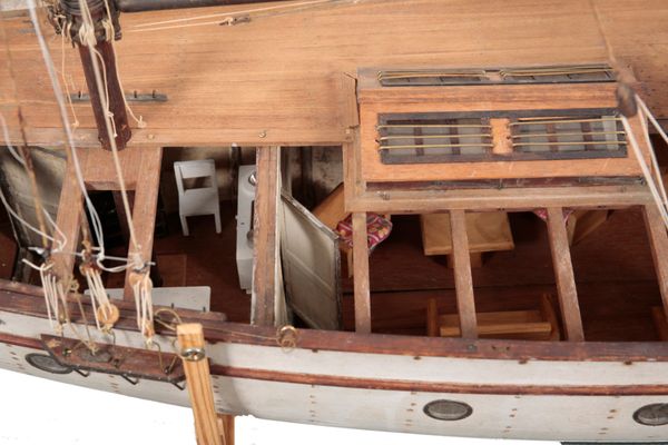 A LARGE WOODEN MODEL CUTTER YACHT 'HELAFLOTE'