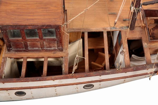 early 20th century, a scale builders model, complete with furniture, crews galley and quarters, bosun and skippers bunks, ladies quarters and sail locker, 163cm high x 190cm long