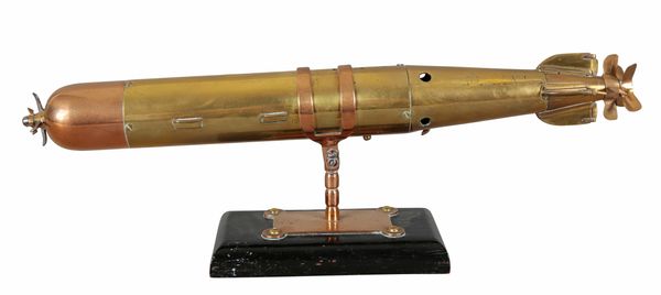 A BRASS AND COPPER ENGINEER'S MODEL OF A TORPEDO