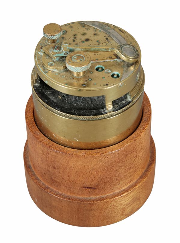 stamped and dated 1941, 7.5cm diameter, mounted on a turned wood stand, 13.5cm high overall Provenance: The fittings of a Mediterranean yacht.