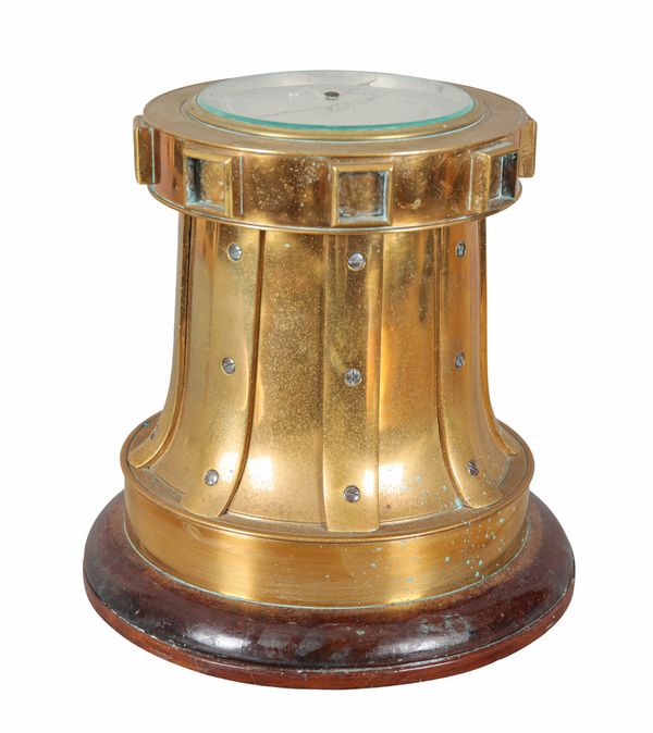 20th century, with silvered dial and blue steel hands, mounted on a tapered capstan winch and turned wood base, 21cm high x 22cm diameter Provenance: The fittings of a Mediterranean yacht.
