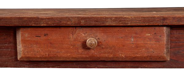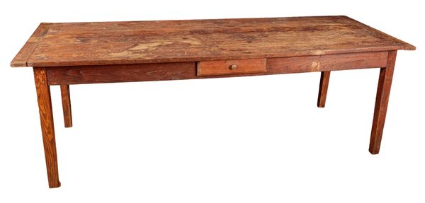 early 20th century, the rectangular top over a plain frieze with a single drawer, on tapered square legs, 73cm high x 218cm wide x 81cm deep