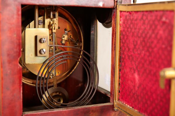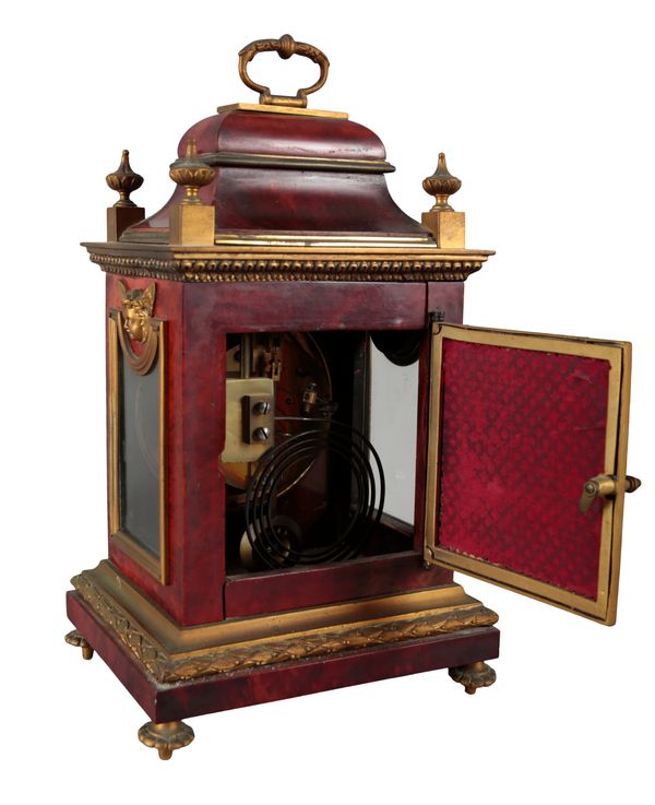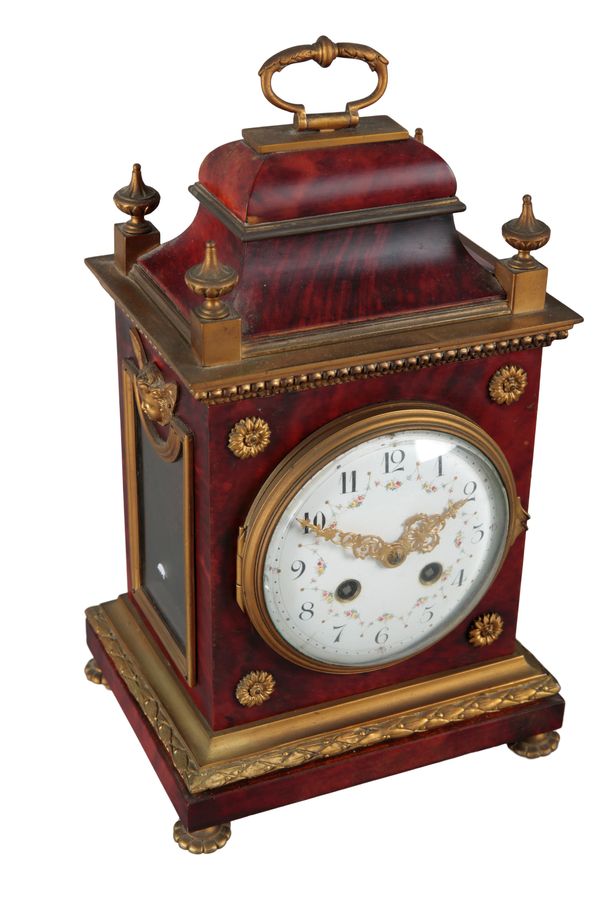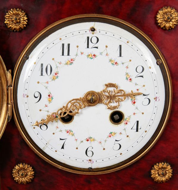 A CONTINENTAL FAUX TORTOISESHELL AND GILT METAL MOUNTED MANTEL CLOCK