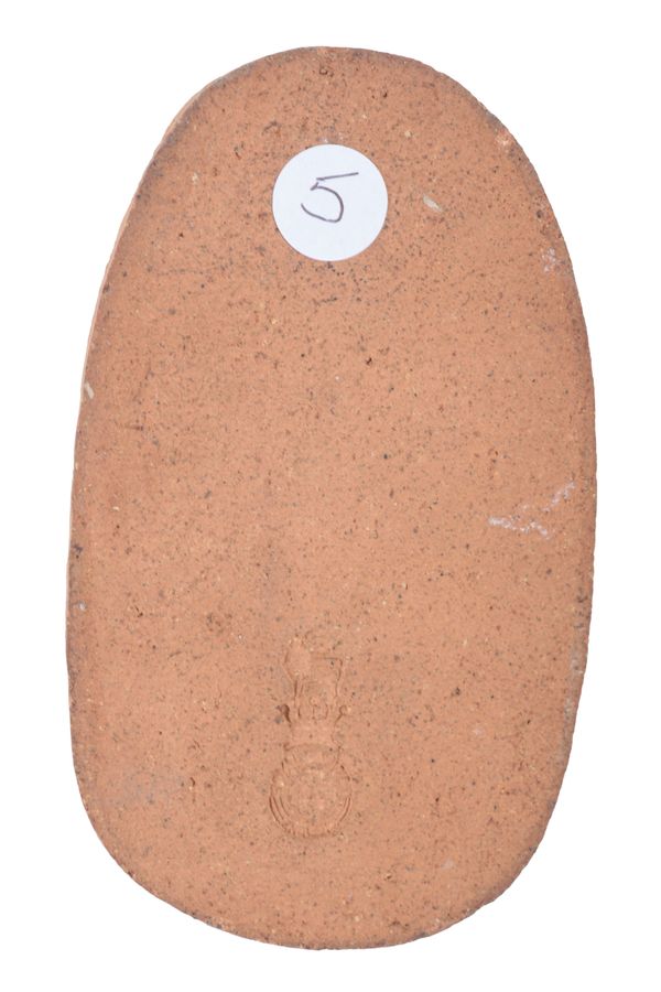 c.1920, bearing Doulton stamp to the reverse, the oval plaque with soldier in relief, modelled after the antique found at Hadrians wall, Northern Britain, 13cm high x 7.5cm wide Provenance: The Cosgrove Collection.