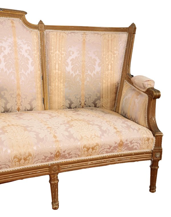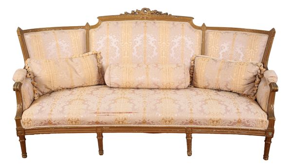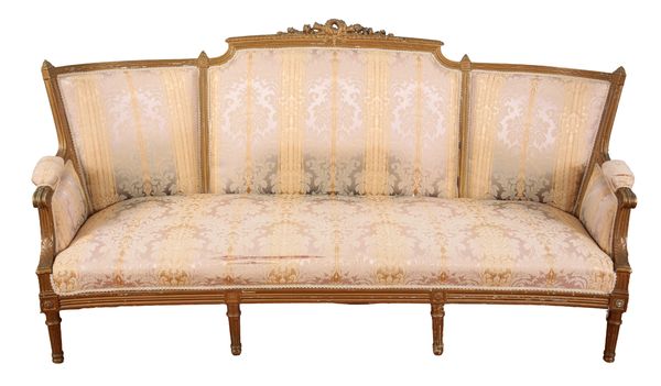 A LOUIS XVI STYLE GILTWOOD FOUR SEAT SETTEE