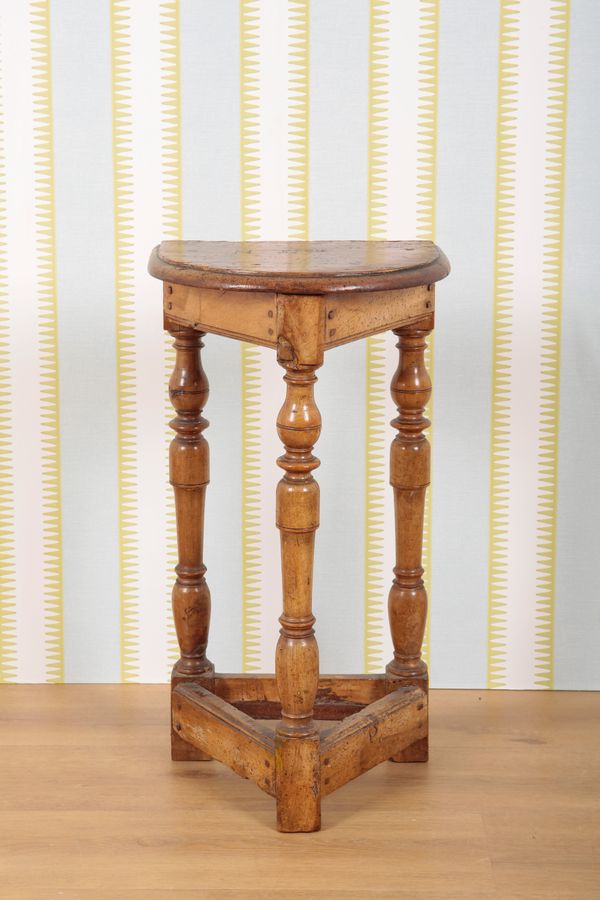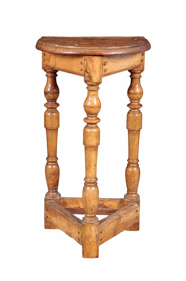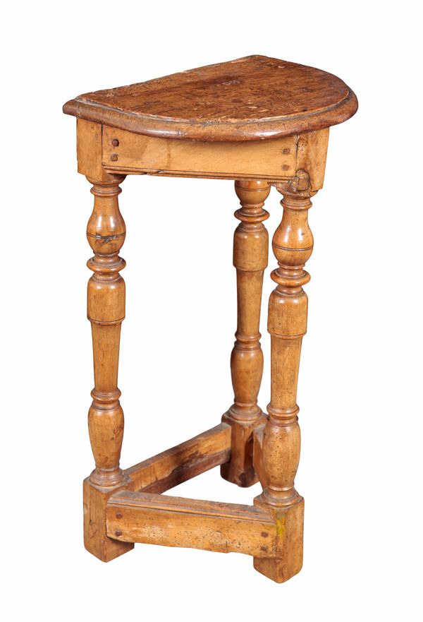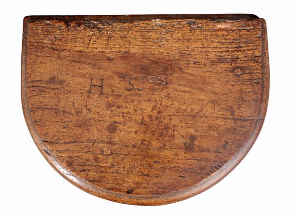 17th century and later, the bow front top inscribed 'H S.cois', on baluster turned legs joined by square stretchers, 67cm high x 36cm wide x 27.5cm deep