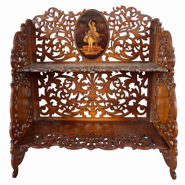 A SWISS FRETWORK AND MARQUETRY TABLE BOOKCASE