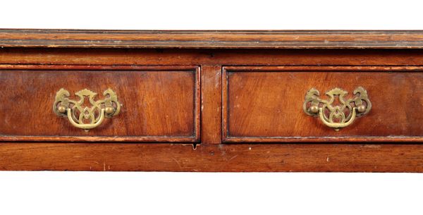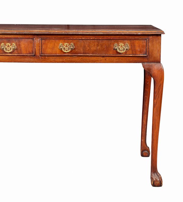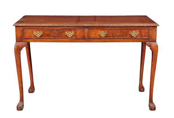 20th century, fitted with two short drawers, on cabriole legs with claw and ball feet, 77cm high x 122cm wide x 56cm high