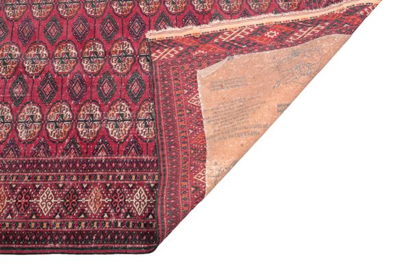 20th century, the red ground decorated with repeating elephant's foot ghuls, within conforming borders and guards, 179cm x 120cm
