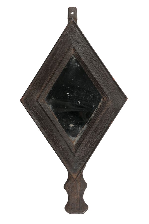 A VICTORIAN 'FOLK ART' RHOMBUS SHAPED MIRROR