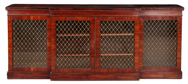 A GEORGE IV ROSEWOOD BREAKFRONT BOOKCASE