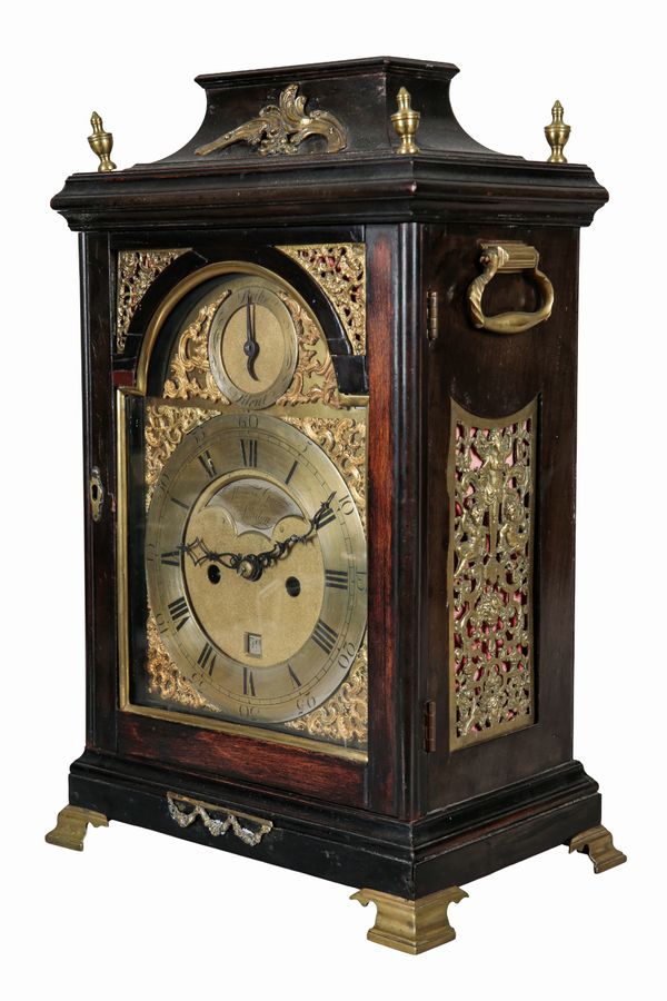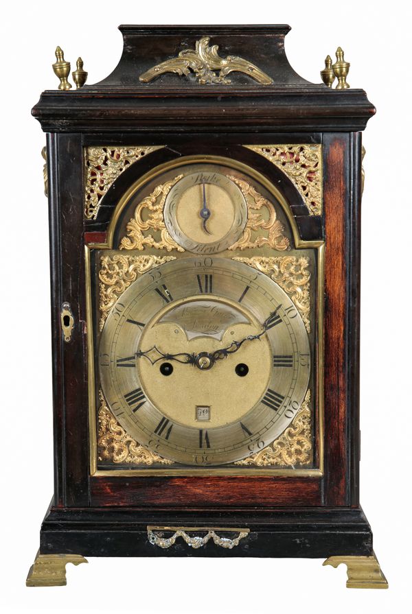 A GEORGE III EBONISED BRACKET CLOCK BY THOMAS GARNER OF LONDON