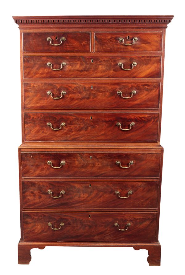 A GEORGE III MAHOGANY CHEST ON CHEST