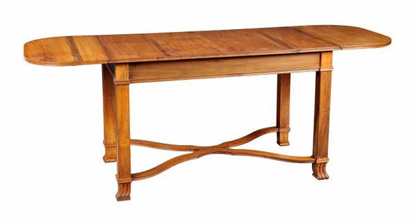 A CONTINENTAL WALNUT DROP LEAF DINING TABLE