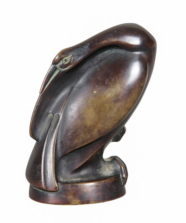 early 20th century, modelled on a circular plinth base etched to the underside with an image of a sailing ship flying a flag 'Holtrans', further inscribed 'HOLTRANS STAF 31-12-'30', 9.5cm high