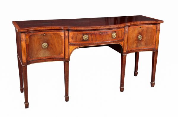 A GEORGE III STYLE MAHOGANY SERPENTINE SIDEBOARD