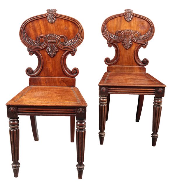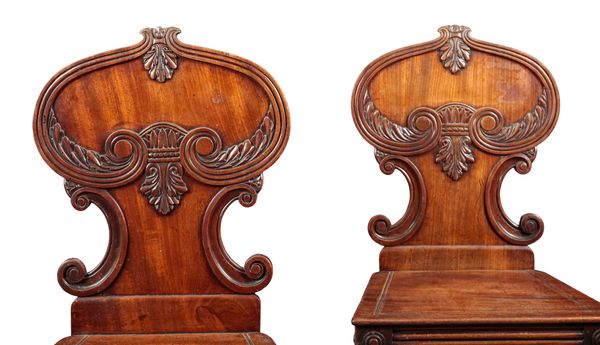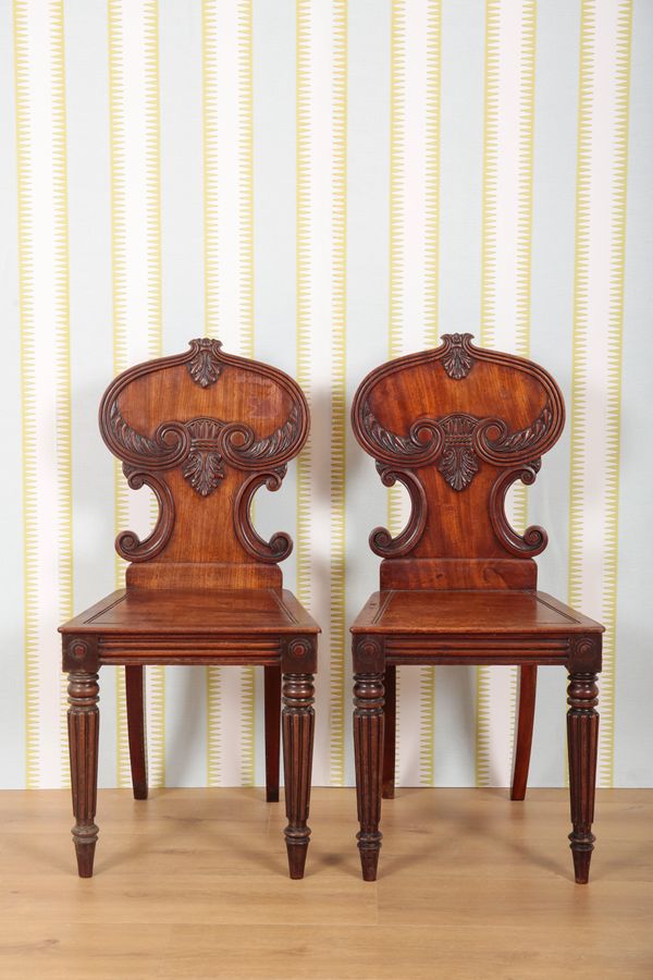A FINE PAIR OF REGENCY MAHOGANY HALL CHAIRS