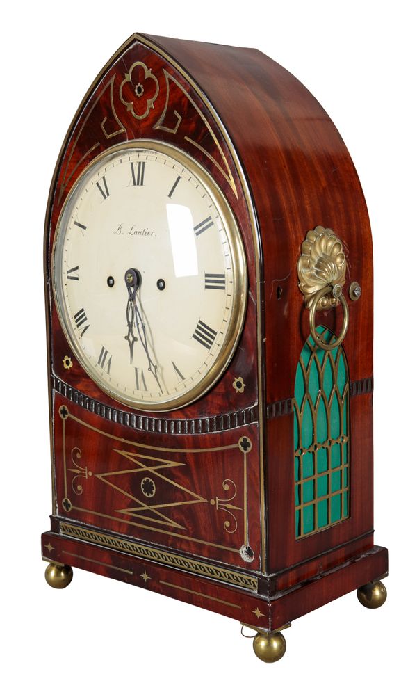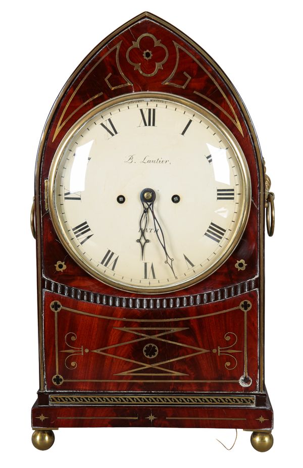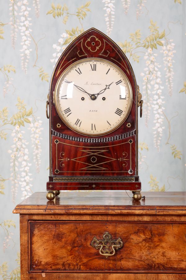 A GEORGE IV MAHOGANY LANCET BRACKET CLOCK BY BENJAMIN LAUTIER OF BATH